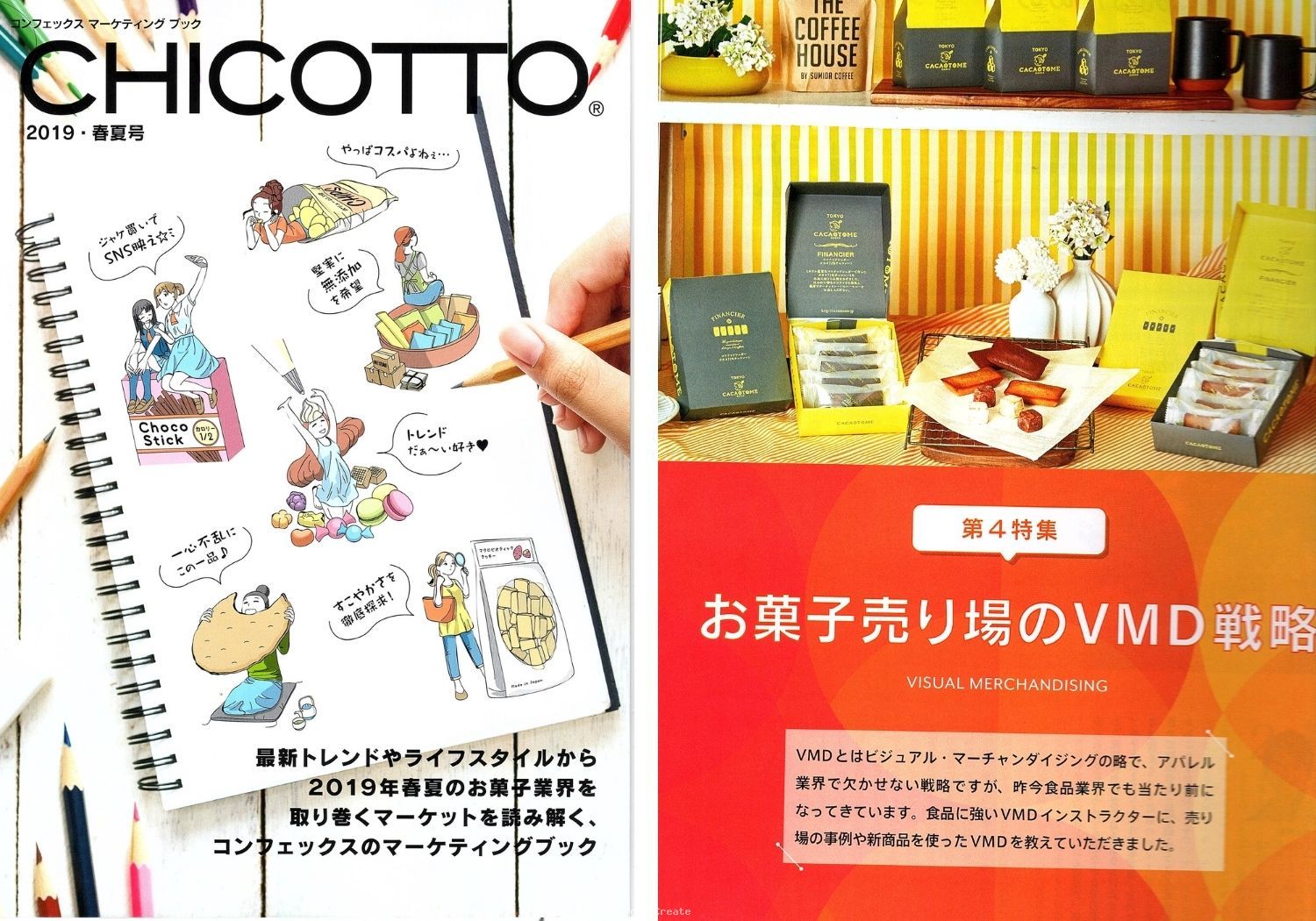 今回弊社は、「VMDインストラクター」「食のVMDの専門家」としての知見をご評価いただき、この『CHICOTTO』誌上にて「お菓子売り場のVMD戦略」特集のご依頼をいただきました。
