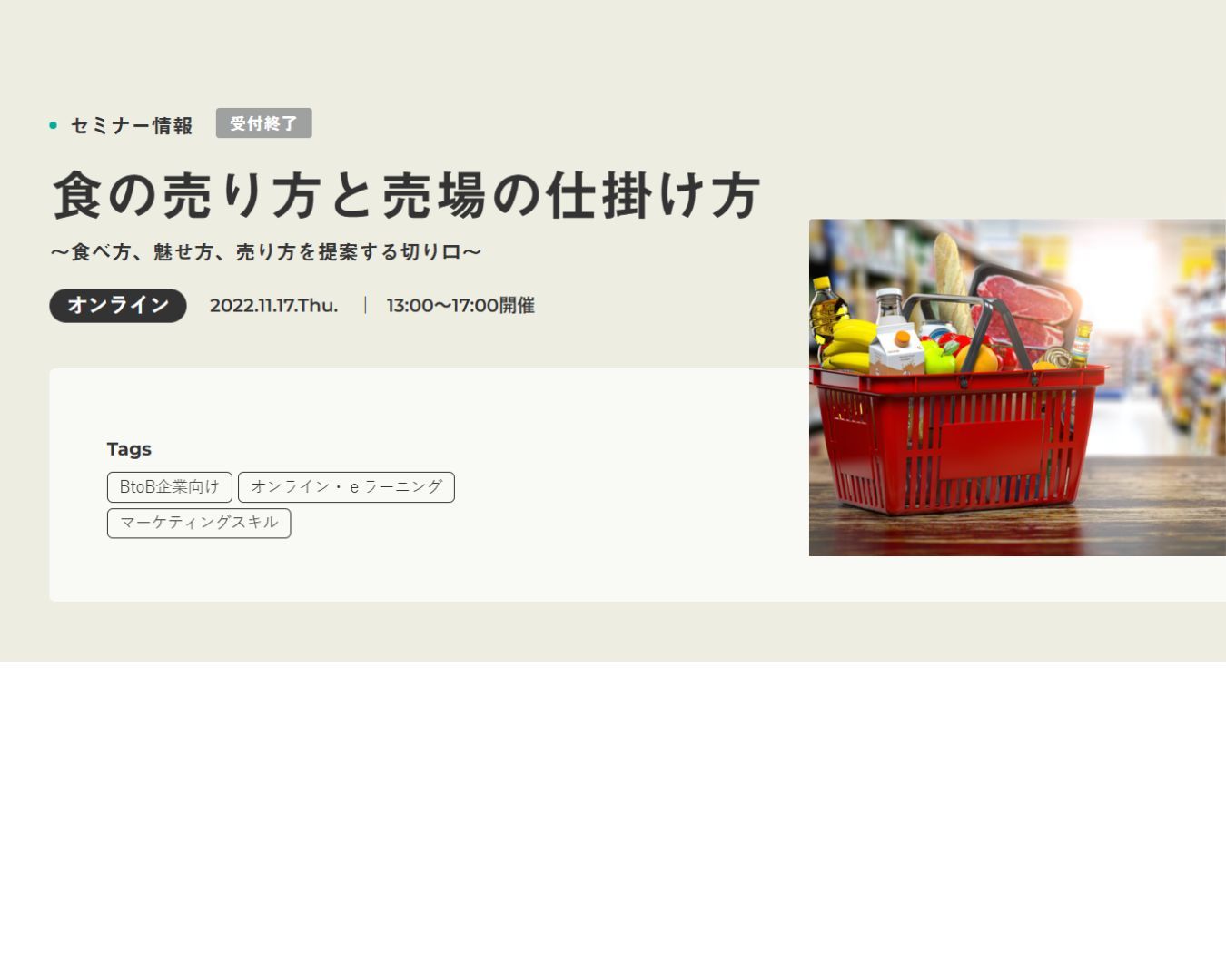 株式会社マーケティング研究協会が主催するオンラインセミナー「食の売り方と売場の仕掛け方~食べ方、魅せ方、売り方を提案する切り口~」に登壇いたしました。