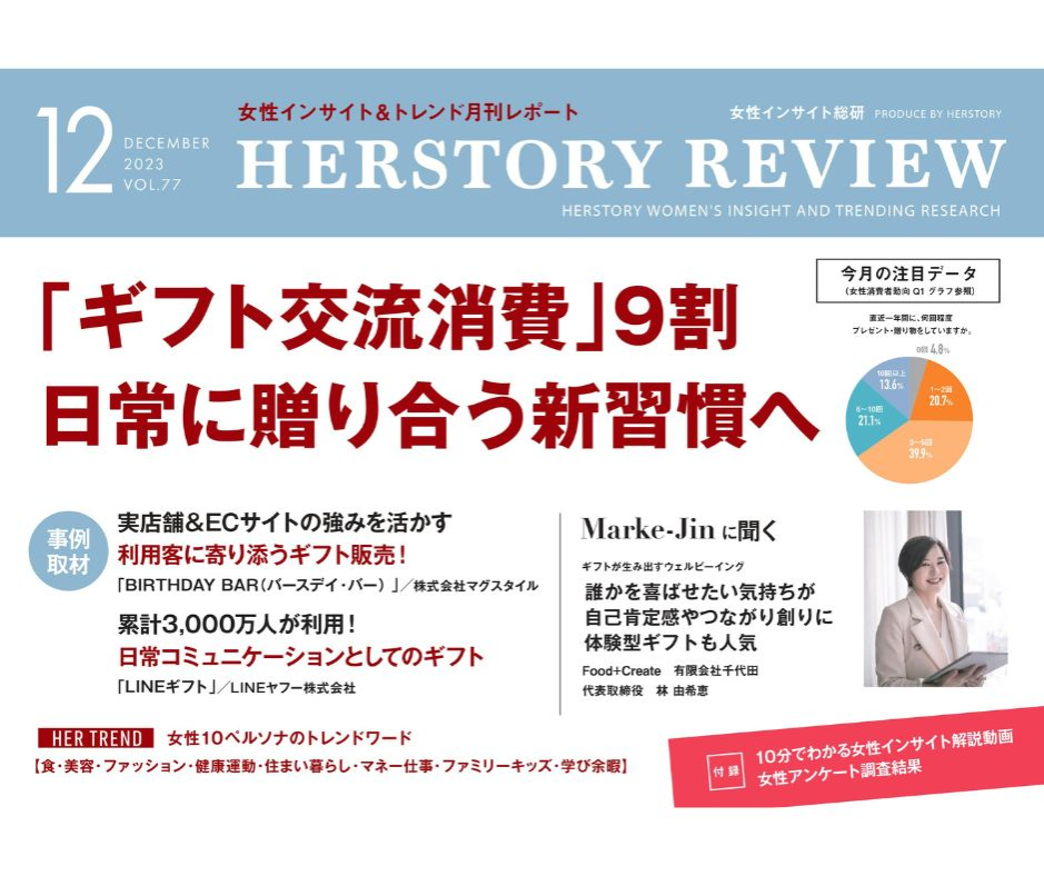 女性インサイト総研 HERSTORY様が発行する 女性インサイト&トレンドレポート 「HERSTORY REVIEW 2023年12月号」Marke-Jin に聞く にて取材を受けました!
